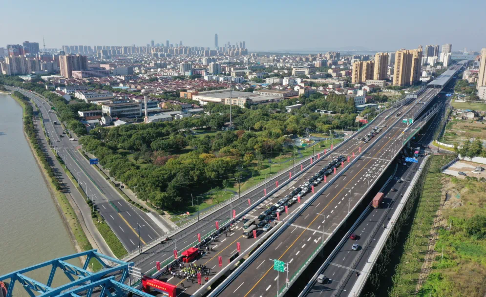 10月21日,蘇州江陵路高架正式建成通車。蘇州市交通運(yùn)輸局局長焦亞飛,吳江區(qū)委書記李銘,吳江區(qū)委副書記、區(qū)長王國榮,區(qū)人大常委會主任徐曉楓,區(qū)人大常委會黨組書記盛紅明等出席通車儀式并推桿。