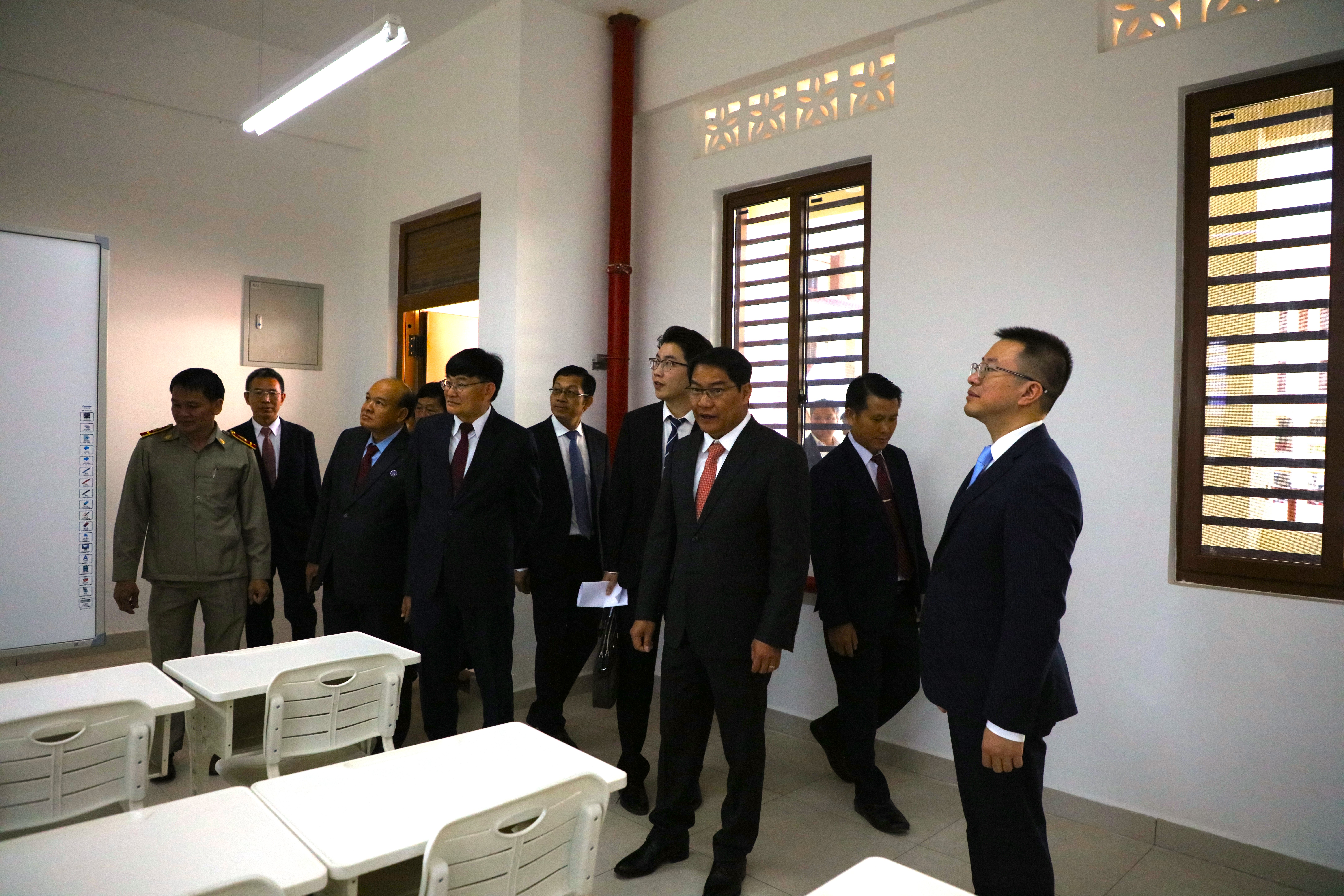 交接儀式后,參加儀式人員實地參觀了援老撾萬象納塞通中學。