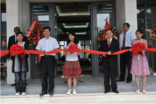 ■鐘山副部長(zhǎng)(左二)、吳澤獻(xiàn)大使(右二)為新館剪彩