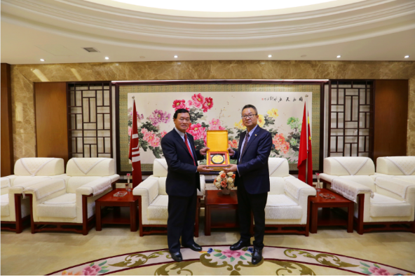 █老撾教育部副部長(zhǎng)孔希·森瑪尼同仇天青總裁互相交換禮物