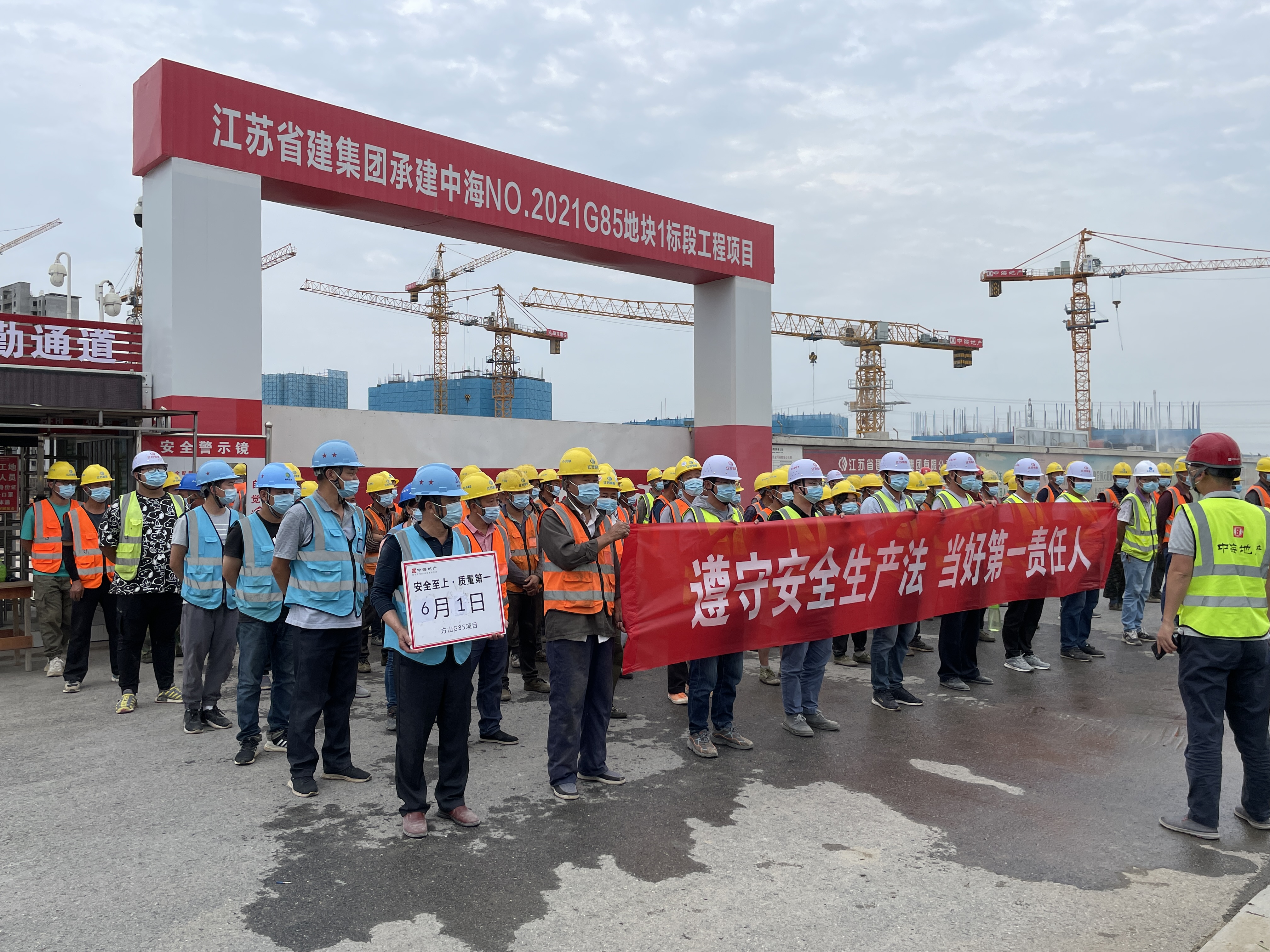 江蘇合發(fā)南京海峽兩岸科工園項(xiàng)目組織全體管理人員、一線施工作業(yè)人員開(kāi)展“安全生產(chǎn)月”主題宣講活動(dòng)。項(xiàng)目管理人員將“遵守安全生產(chǎn)法,當(dāng)好第一責(zé)任人”的理念傳達(dá)到一線施工人員,并通過(guò)懸掛橫幅、發(fā)放宣傳資料、解答疑問(wèn)等形式,激活了工人們安全生產(chǎn)理論學(xué)習(xí)和宣傳教育的“神經(jīng)末梢”,在項(xiàng)目現(xiàn)場(chǎng)營(yíng)造了濃厚的安全生產(chǎn)氛圍。