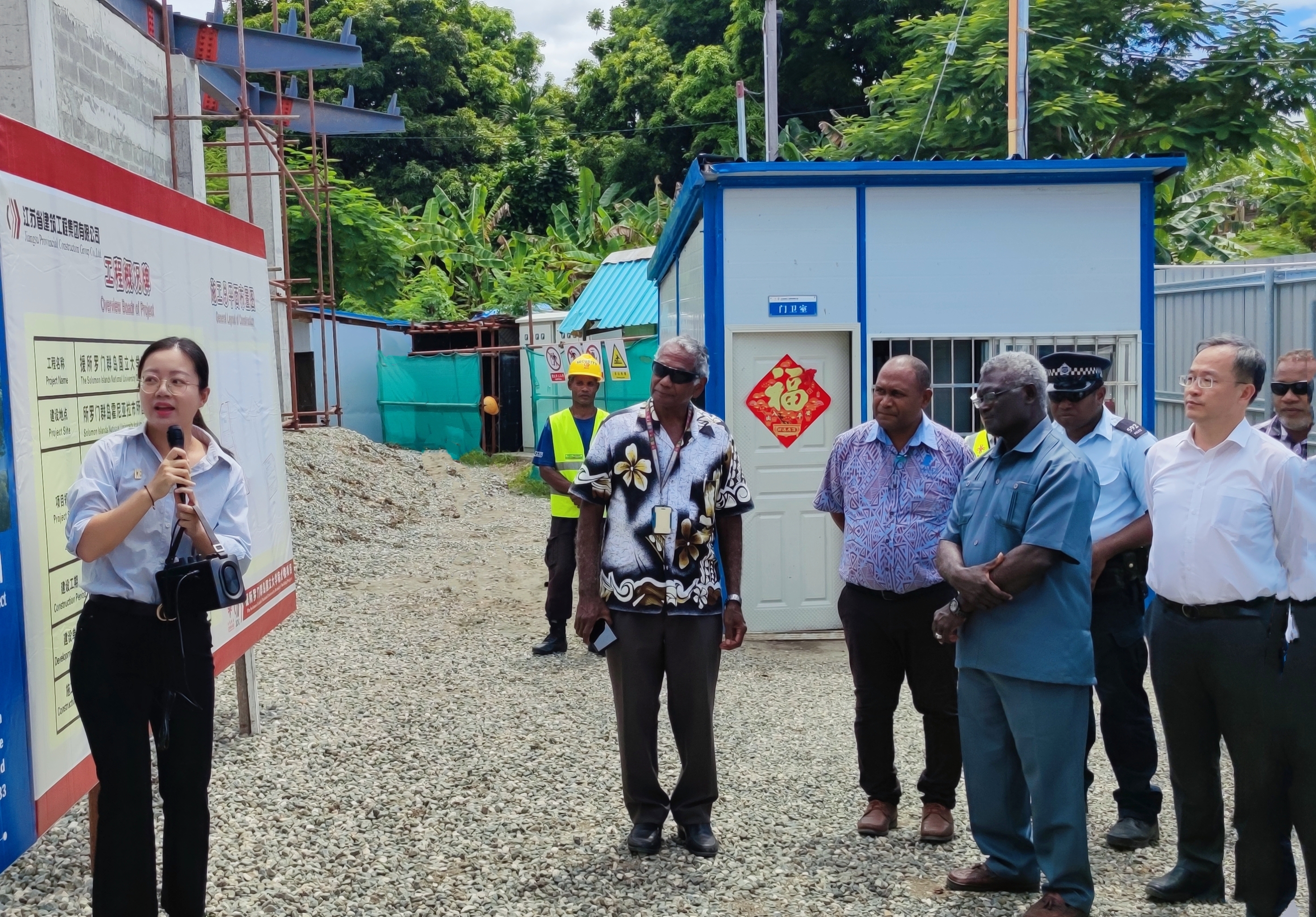 3月22日,所羅門群島總理索加瓦雷在中國駐所羅門群島大使李明陪同下,參視察了由集團承建的中國政府援所國立大學宿舍樓項目施工現(xiàn)場。所政府多位內(nèi)閣部長、議員、太平洋運動會組委會成員陪同。