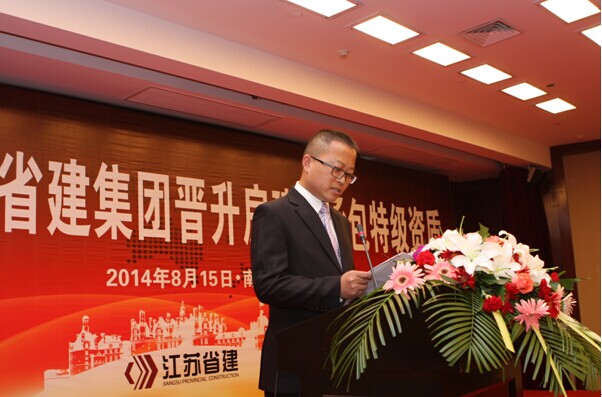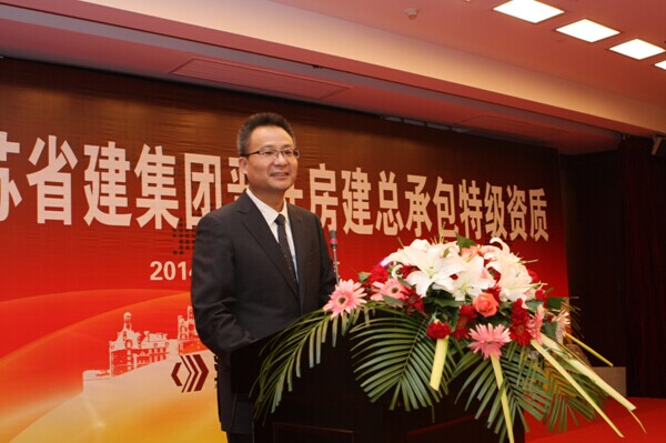 集團(tuán)公司董事長陳正華發(fā)表了熱情洋溢的致辭。他在講話中對為申特工作付出艱辛努力的集團(tuán)廣大員工和所有關(guān)心和支持江蘇省建申特工作的各級領(lǐng)導(dǎo)表示敬意和感謝。陳正華說,獲得房建總承包特級資質(zhì)是數(shù)代省建人夢寐以求的目標(biāo),是江蘇省建改制以來最重要的戰(zhàn)略任務(wù)之一。七年前我們與特級資質(zhì)失之交臂,七年來我們對特級資質(zhì)的夢想和追求從來沒有松懈過。為了實(shí)現(xiàn)這一目標(biāo),我們成立了以仇天青總裁為組長的特級資質(zhì)申報領(lǐng)導(dǎo)小組,吃透新標(biāo)準(zhǔn)的精神,制定了詳細(xì)的房建特級資質(zhì)升級的申報方案,從“企業(yè)資信能力、專業(yè)技術(shù)人員、科技進(jìn)步水平、信息化管理、代表工程業(yè)績”等方面,對照標(biāo)準(zhǔn)要求,對集團(tuán)公司的情況進(jìn)行全盤梳理,逐一落實(shí)。在經(jīng)過長達(dá)七年的申報過程中,集團(tuán)各單位、各部門通力合作、不懈努力,克服了申報過程中的諸多困難,使江蘇省建集團(tuán)全面達(dá)到了《特級資質(zhì)新標(biāo)準(zhǔn)》規(guī)定的各項指標(biāo),順利地通過了資質(zhì)審查核準(zhǔn)過程中的業(yè)績核查、資料審查、實(shí)地核查等全部環(huán)節(jié),集團(tuán)成為《特級資質(zhì)新標(biāo)準(zhǔn)》頒布后七年來江蘇省第一家申特成功的企業(yè)。